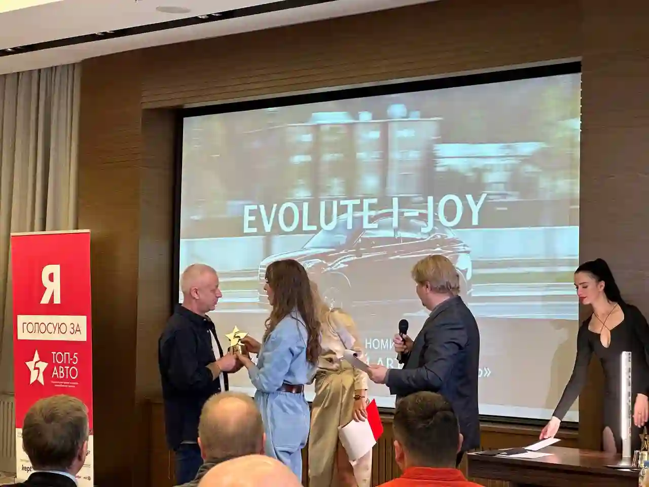 По итогам 11-й национальной премии «ТОП-5 АВТО 2023» кроссовер Evolute i‑JOY стал лучшим в категории «Электрический автомобиль». Решение о победителях премии принималось квалифицированными экспертами автомобильной индустрии с многолетним опытом, в состав которого также входили представители авторитетных СМИ, а также блогеры. Оценка моделей производилась по пяти основным критериям: соотношение цена-качество, дизайн, технические инновации, комфорт и практичность. На основании этих оценок в каждой номинации были выявлены финалисты, набравшие наивысший средний балл. Подсчет и сертификация голосов экспертного жюри осуществляла консалтинговая и аудиторская компания.
