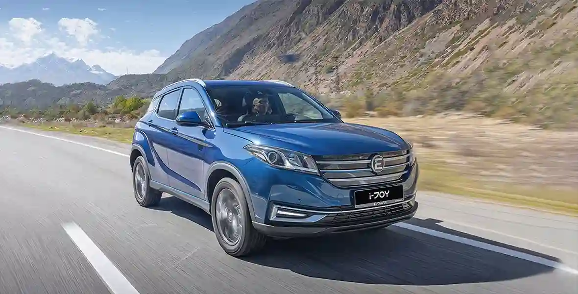 Дизайн i‑JOY не назовешь ультрамодным, но автомобиль тем не менее радует глаз. В обводах кузова обыгрываются яркие решения, знакомые по Hyundai Creta первого поколения и Nissan Murano. О том же, что это электрокар, можно догадаться разве что по отсутствию выпускных патрубков, даже решетка радиатора здесь крупная — как у машин с ДВС. Под лючком скрывается зарядный разъем CCS Type 2 Combo для «быстрой» зарядки, плюс — в комплекте идет портативное зарядное устройство для подключения к обычной бытовой розетке на 220 В.