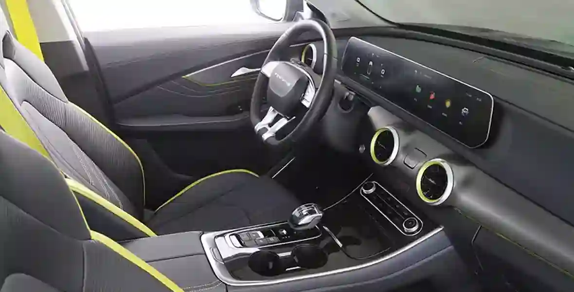 Интерьер кроссовера EVOLUTE i‑SKY не только симпатичный, но и удобный. У кресел с интегрированными подголовниками внятная боковая поддержка, есть регулировка поясничного упора.