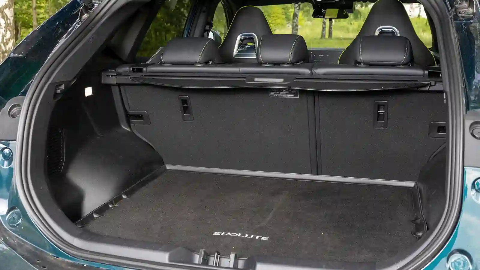 И всё же самая безмятежная обстановка внутри i‑SKY досталась задним пассажирам. Внешними габаритами 4,6-метровый EVOLUTE напоминает, к примеру, популярный Geely Atlas Pro, однако по длине колёсной базы (2715 мм) новинка оказалась ближе к более крупным кроссоверам вроде Haval F7. Поэтому воздуха на втором ряду хватает. Плоская батарея под днищем обеспечила ровный пол, широкий дверной проём — удобный вход-выход, а грамотное расположение дивана — комфортную посадку и внушительный запас свободного пространства по всем направлениям.