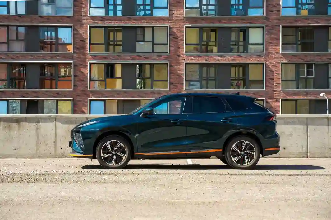 Выглядит i‑SKY спортсменом — обвес с оранжевыми вставками, купеобразный силуэт, кресла-ковши с интегрированными подголовниками. Однако посадка высокая для спорткара, мотор всего один и с довольно скромной для электромобиля отдачей — 204 л.с. и 240 Нм. Этого должно хватить для разгона до 100 км/ч за 8,6 с.